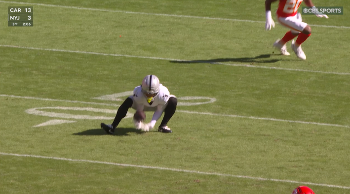 LV 0, KC 0 - 14:19 remaining in the first quarter: You'll need to wait a bit for a pass thrown beyond the line of scrimmage. On second-and-7, Tre Tucker caught a swing pass from quarterback Geno Smith, and scampered a few yards before diving across the line to gain. CBS color commentator Tony Romo piped up to say this was exactly what he’d just described: If the Raiders kept handing the ball off to Ashton Jeanty (as they’d done on the previous play), the Chiefs would begin to respect Vegas’s run game. “That opens up other people,” Romo said. The run established, the Raiders offense could now get rolling.