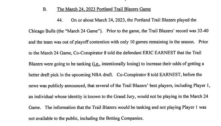 The co-conspirators also allegedly shared information about the Blazers' tanking plans: