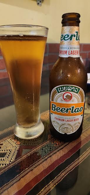 Mrs. Beer Man and I went to a local Laotian restaurant that we hadn't been to since before the pandemic. The beer list was short, but had a Laotian brew called Beerlao. When in doubt, go for the hometown brand. It's a pale lager made with malt and polished rice, which beer nerd professionals call an adjunct lager. It does what it says on the label ("Smooth and Refreshing") and went very well with my kua mee noodles and crispy beef jerky.