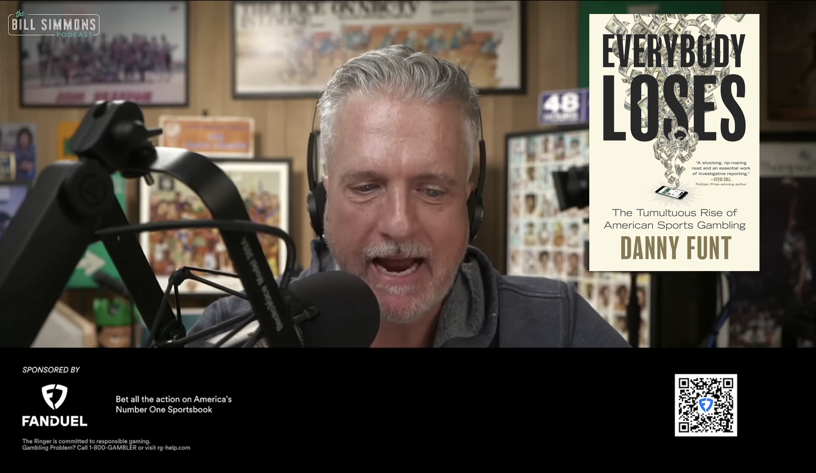 On its app, FanDuel promotes the Ringer’s recommended bets, often alongside Simmons’s headshot. After he suggested a same-game parlay for the 2024 Super Bowl, Pat McAfee mocked him for only getting about 8,000 customers to follow his bet, McAfee claimed, while his own suggested Super Bowl SGP was copied by a quarter-million bettors. McAfee didn’t mention if the parlay he’d endorsed was successful. (He might have been pissed about Simmons doing an impersonation that made McAfee sound like a dufus.) “Keep running your mouth, Bill,” McAfee jeered. What a sign of the times: two of the wealthiest men in sports media bickering about who gets more of their listeners and viewers to place foolish bets.