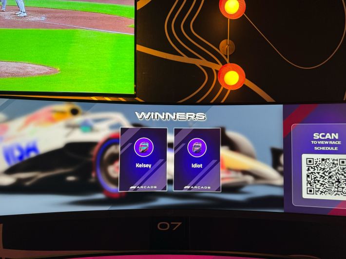 My only experience before going to the arcade was briefly playing the video game on a friend's PS5 over Thanksgiving, on the easiest difficulty, when I thought, "I'm da king of da highway." While at the F1 Arcade, I picked the second-easiest difficulty, and thought, "I'm da king of da highway."