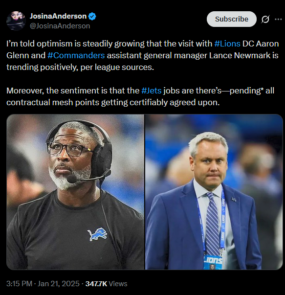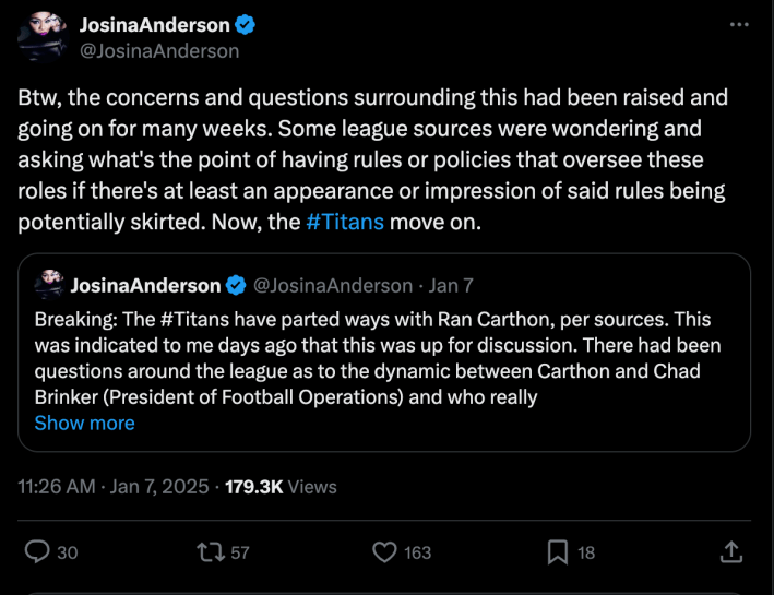 Josina Anderson, putting in close proximity "job is there's" and "contractual mesh points":