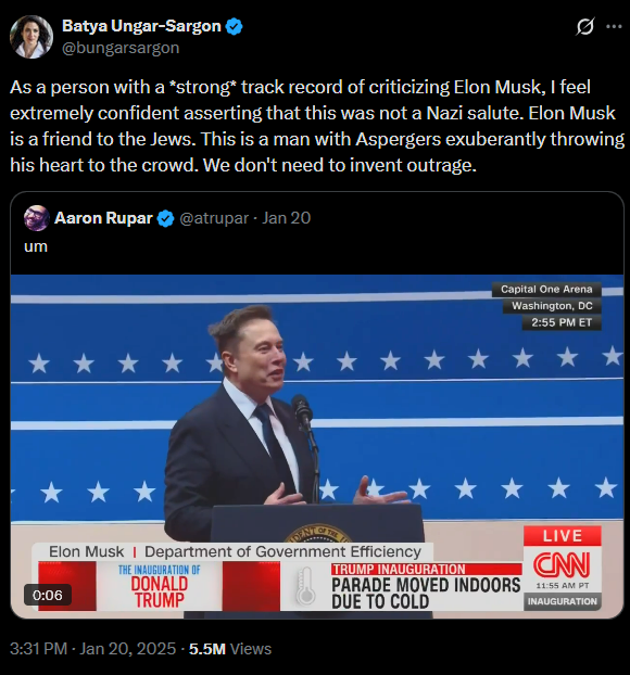 Noted free thinker Batya Ungar-Sargon, stretching language and credulity to describe a common gesture so widely known and loved: