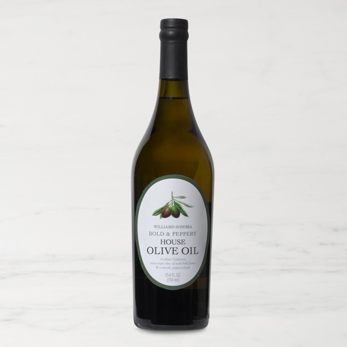 Copy: “Intensely flavorful, buttery, peppery… To give our California extra-virgin olive oil its robust character, our signature blend showcases the historic, intensely flavorful Manzanillo variety, blended with the buttery, peppery finish of Arbequina olives for perfect balance. Use our premium olive oil in salad dressings and sauces, drizzle it over grilled meats and vegetables, or mix with balsamic vinegar to create a delicious dip for bread. A Williams Sonoma exclusive.”
