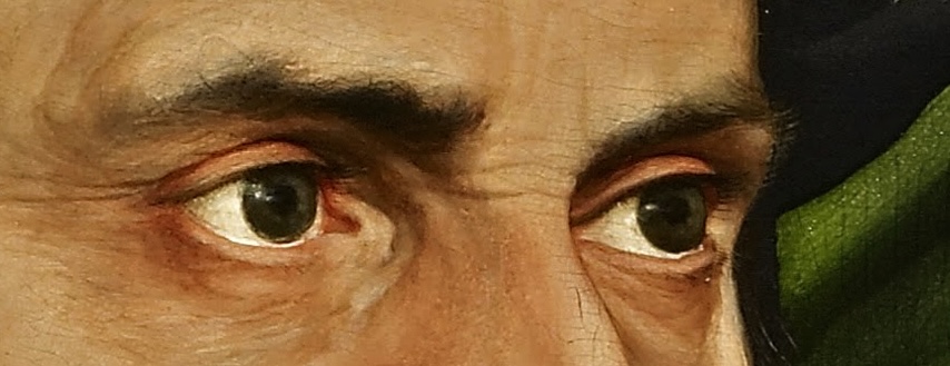 It's always the eyes, isn't it? Those focal points of paintings that transfix then linger in the memory. Saturn Devouring His Son, the whites of the eyes telling of madness. Ivan the Terrible and His Son Ivan, the whites speaking to the brief and too-late reclamation of humanity, amid and after terrible violence.