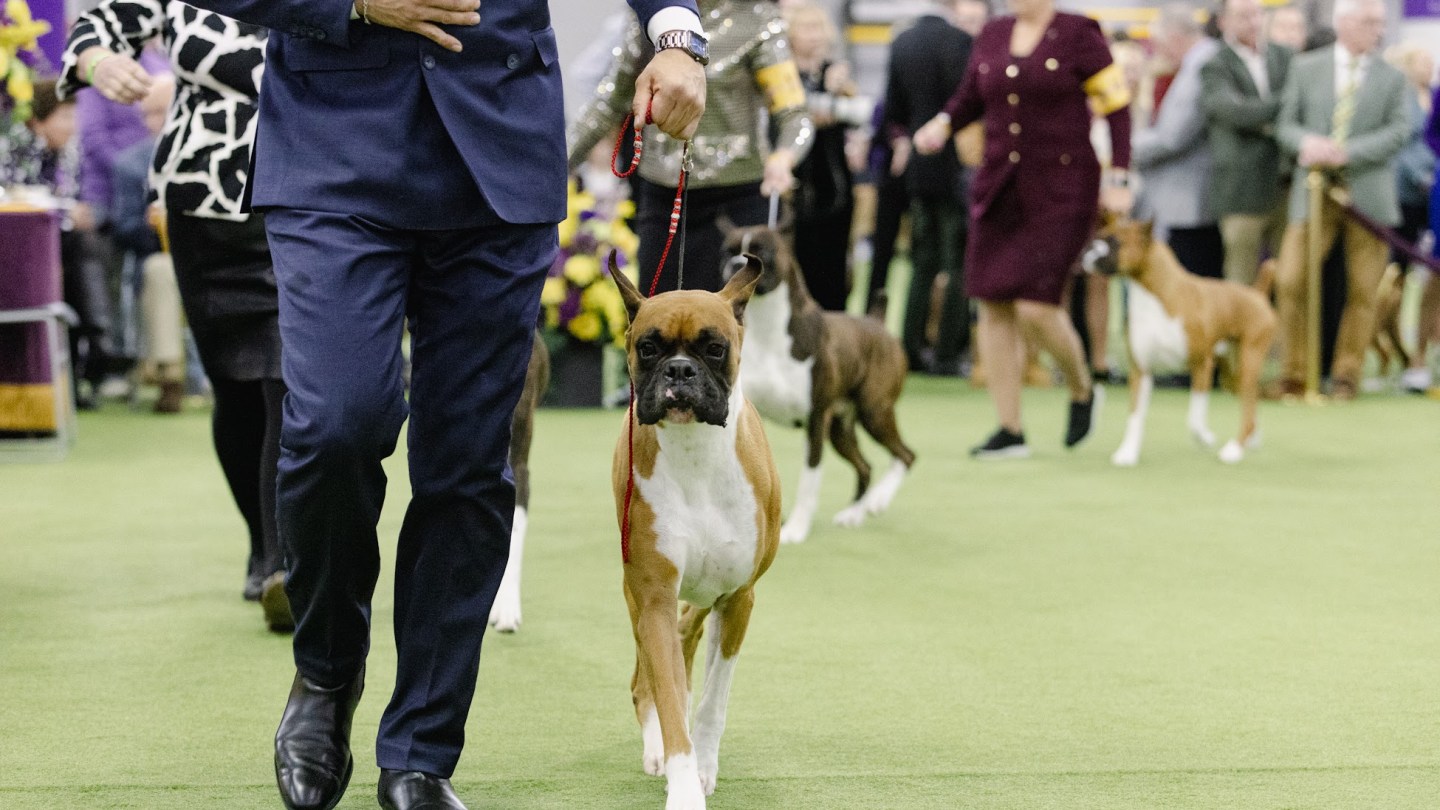 Like many of the women around me, the Cane Corso owner is wearing a tweed suit. As I’ve learned from many handlers over the course of two days, those suits speak to the prestige, perfectionism, and traditionalism of the Westminster Kennel Club Dog Show. It matters if the bitch is fit because that’s the name of the game. Sure, many of these dogs are born perfect; high-level breeders can often tell from puppyhood if a dog has potential to become showready. They have to be champions just to get to Westminster. But in order to stand out here, at the “Super Bowl of Dog Shows,” the dogs need every edge they can get: a freshly cleaned coat that is maintained every few minutes, flawless posture, and, yes, a handler that has strategized their outfit around the canine they’ll be presenting.