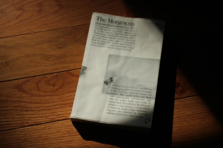 I first discovered Mandylion when I found their copy of The Morgesons in a bookstore and was entranced by the cover design and jacket copy, which admonished the reader to “open carefully.” The book was also wrapped in plastic, which I assumed was some kind of statement about its exclusivity and preciousness as an object, but which I later learned was just to protect the pages during shipment.