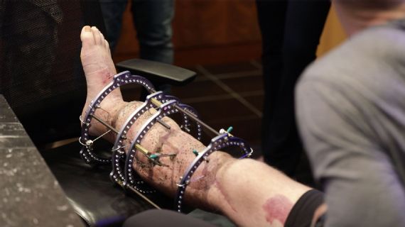 That’s the leg of former starting quarterback Alex Smith, who has been cleared by doctors to play football again. Should Alex Smith play football again? NO. Should he play football again for this Hitler Youth camp? DEAR GOD NO. I know it’s inspiring on a pregame level that Smith is back from that injury, but this is like watching a dude who stepped in a bear trap be like FINALLY I CAN STEP IN BEAR TRAPS AGAIN.